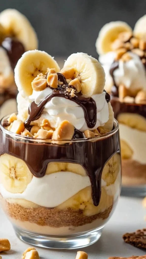 The layers of rich chocolate, creamy vanilla pudding, fresh bananas, and crunchy wafers create a harmonious balance of textures and flavors that will leave your guests asking for seconds. Whether you’re making these for a family gathering, a party, or just as a special treat, this dessert is sure to impress.
